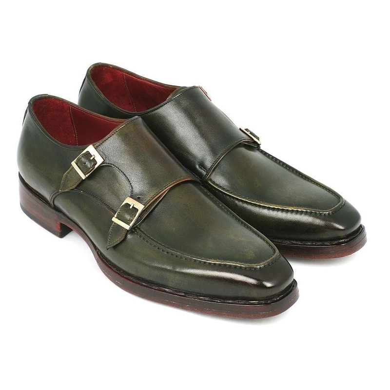 Double monkstrap style men's handmade shoes.Goodyear welted construction with triple leather soleGreen hand-painted leather upperBordeaux leather lining.This is a made-to-order product. Please allow 15 days for the delivery. Because our shoes are hand-pain