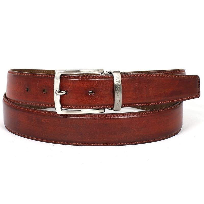 PAUL PARKMAN Men’s Leather Belt Hand-Painted Reddish Brown (ID#B01-RDH)