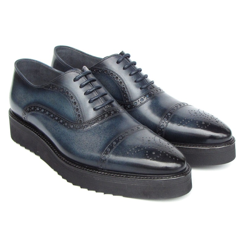 Cap toe oxford stylesmart casual shoes for men.Navy hand-painted leather upper.Blackrubber sole.Leather lining and inner sole.This is a made-to-order product. Please allow 15 days for the delivery. Because our shoes are hand-painted and couture-level creat