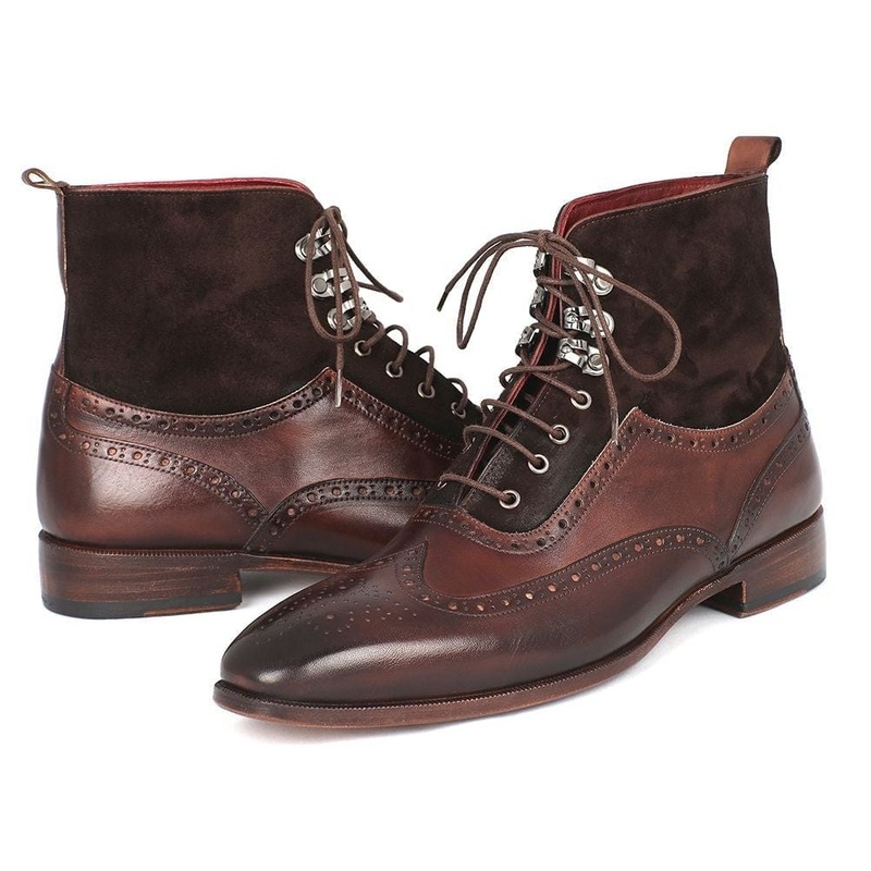 Paul Parkman Men’s Wingtip Boots Brown Suede & Calfskin (ID#991-BRW)