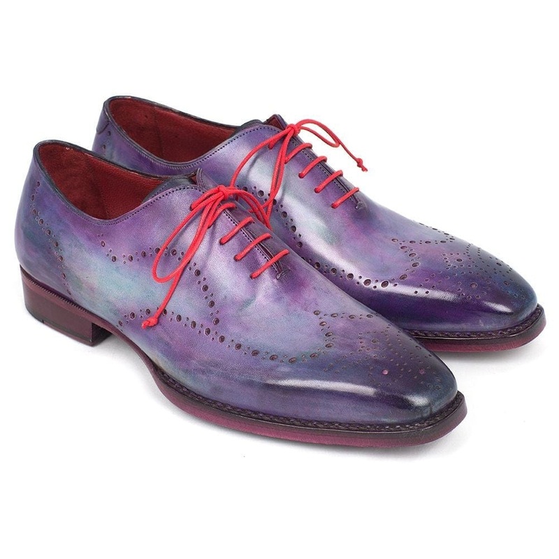 Wingtip oxford men's handmade shoesGoodyear welted, double leather solePurple hand painted calfskin upperBordeaux leather lining and inner sole with red lacesThis is a made-to-order product. Please allow 15 days for the delivery. Because our shoes are hand