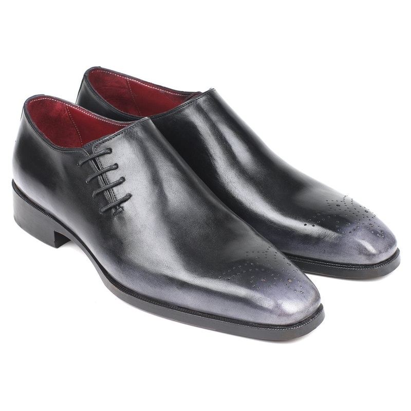 Side lace plain toe oxfords.Grayhand-painted leather upper.Purple burnished leather sole.Bordeaux leather lining and inner sole.This is a made-to-order product. Please allow 15 days for the delivery. Because our shoes are hand-painted and couture-level cre