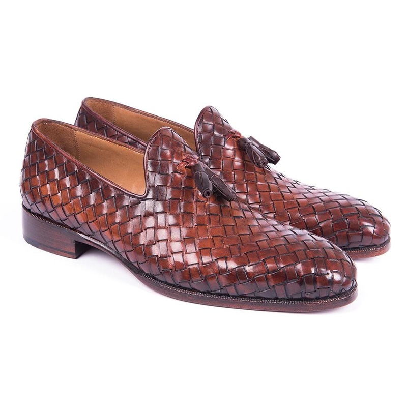 Paul Parkman Woven Leather Tassel Loafers Brown (ID#WVN88-BRW)