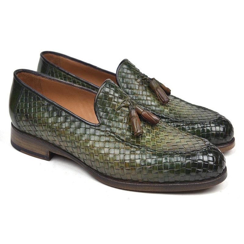 Paul Parkman Woven Leather Tassel Loafers Green (ID#WVN44-GRN)