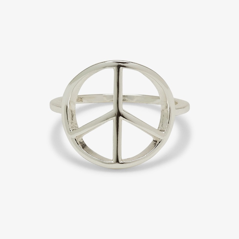 Add joy and good vibes to any outfit with our Peace Sign Ring. This simple silver piece features a delicate band, with a cutout peace sign design that spreads love (and 70s style).