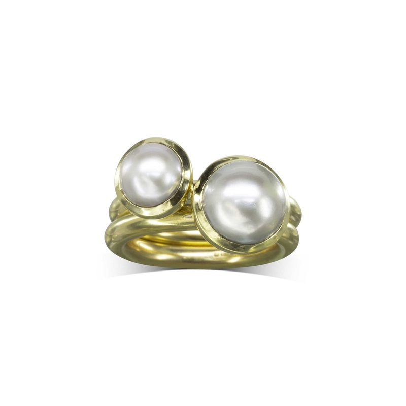 Gold Stacking Rings: Handmade in white or yellow gold, these stacking rings provide a sleek and modern setting for the pearls. The setting complements the pearls beautifully, creating a timeless and elegant combination.