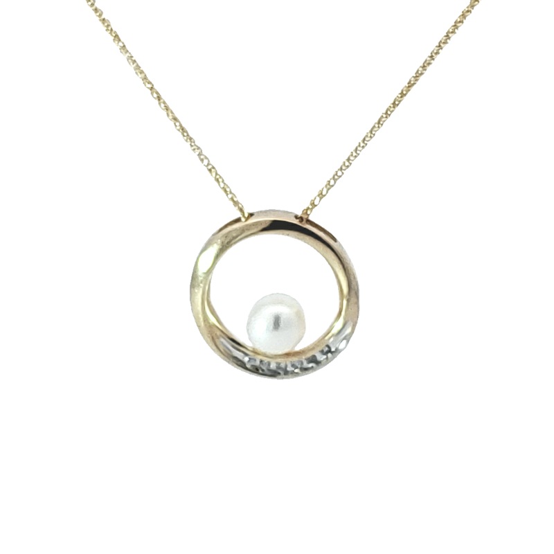 14k White Gold and Black Pearl Pendant on a White Gold .8mm Diamond Cut Cable Chain. Length: 18″