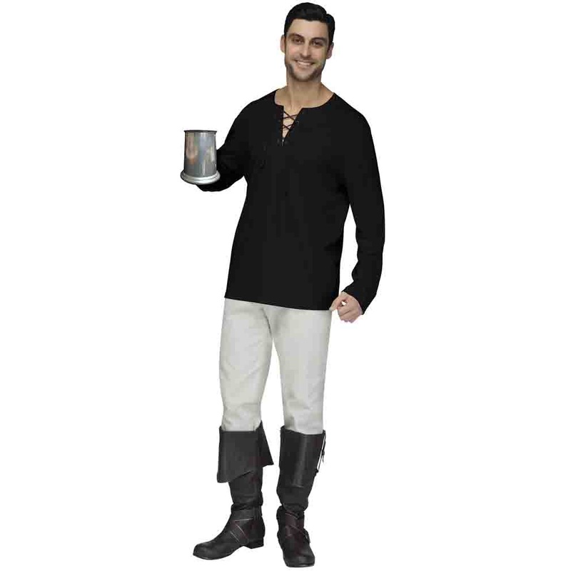 Cheers to that!Complete your medieval outfit with this Peasant Black Mens Shirt. This shirt is long sleeved with tie up detail at the front and can be paired with beige pants and boots for an old time look.Item Includes:Shirt.Fit and Sizing:See size chart