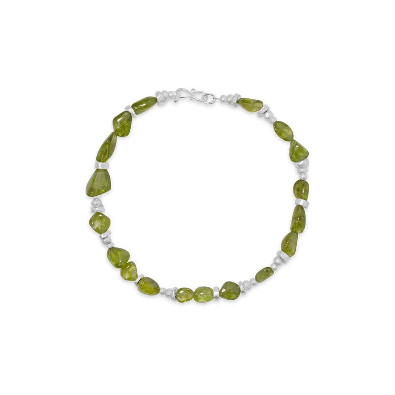 END OF LINE The Pebble Peridot Necklace celebrates the stunning beauty of A-grade peridot, elegantly strung with silver accents.