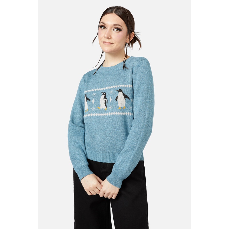 Knit Jumper – Long Sleeves – Fitted Shape – Round Neckline – Relaxed Fit – Penguin Placement Artwork On Front – Made From Soft Knitted Cotton – Available In Blue