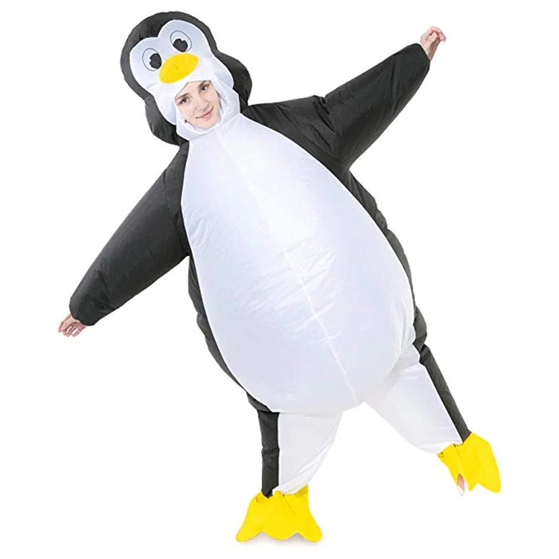 Live in the arctic polar north while wearing our Penguin Inflatable Adult Costume. Featuring a full-body Penguin inflatable with a black and white print, with yellow shoe covers and a yellow snout. For easy visibility, the costume features a clear window around your face. The costume comes attached with an air pump, simply step into the costume, adjust the direction of the fan and tighten the drawstrings for inflation. Great for wearing to your next costume party.