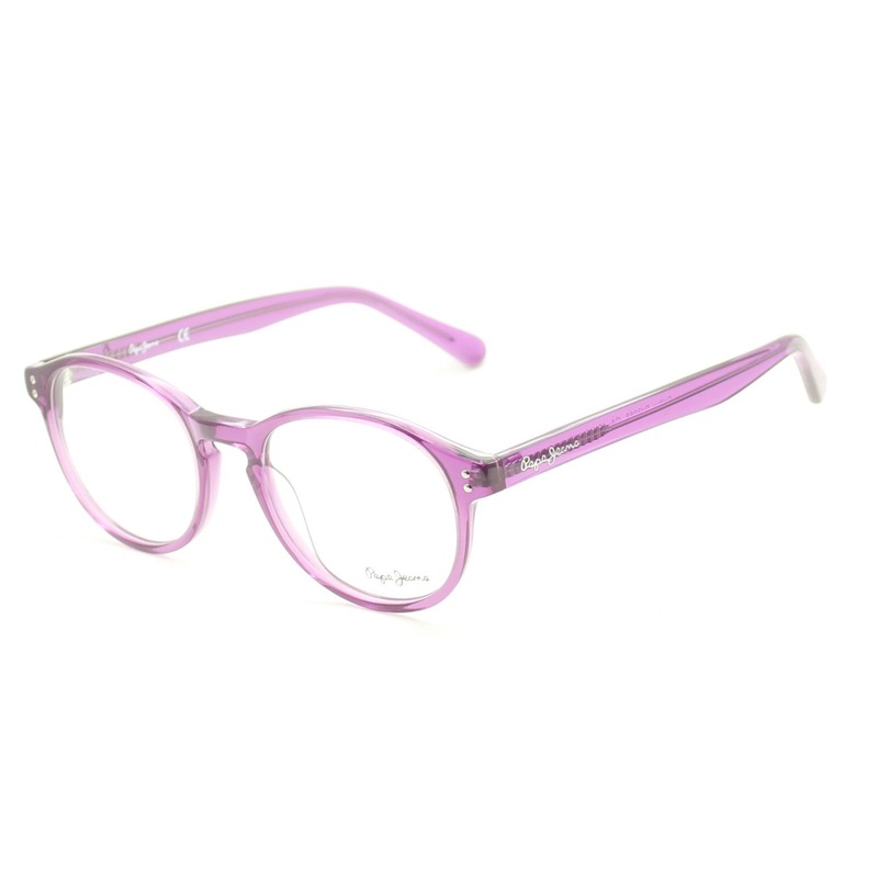 PEPE JEANS EYEWEAR COLBY Full Rim Frames - 100% Authentic - PJ 3058 col C4 Gloss transparent purple acetate frames and sides inlaid with Pepe Jeans logos Never been worn Lens Width = 49mm Frame Height = 45mm Bridge = 19mm Temple (Arm Length) = 140mm SUPPLI