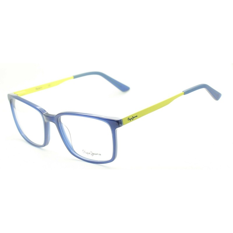 PEPE JEANS EYEWEAR Full Rim Frames - 100% Authentic - Sean PJ 3186 col C2 Gloss transparent blue acetate frames and arm end coversYellow rubber coated metal sides set with Pepe Jeans logosPrecision spring hinges for a comfort fitNever been wornLens Width =