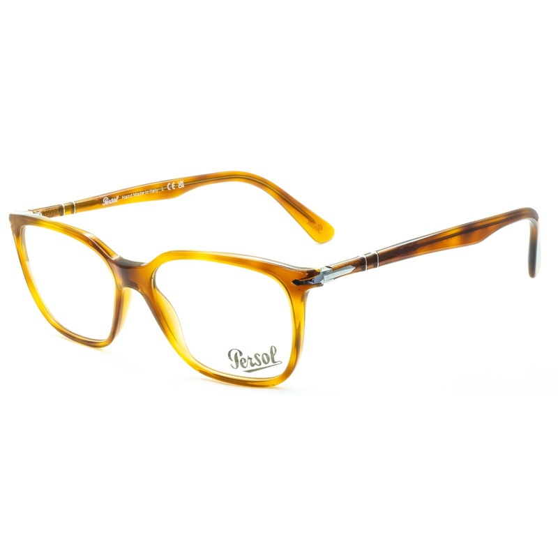 PERSOL Full Rim Frames - 100% Authentic 3298-V 96 Terra di Siena Gloss transparent brown acetate frames and arms with silver metal hinges Precision spring hinges for a comfort fit Brand new - Never been worn Lens Width = 54mm Frame Height = 43mm Bridge = 1
