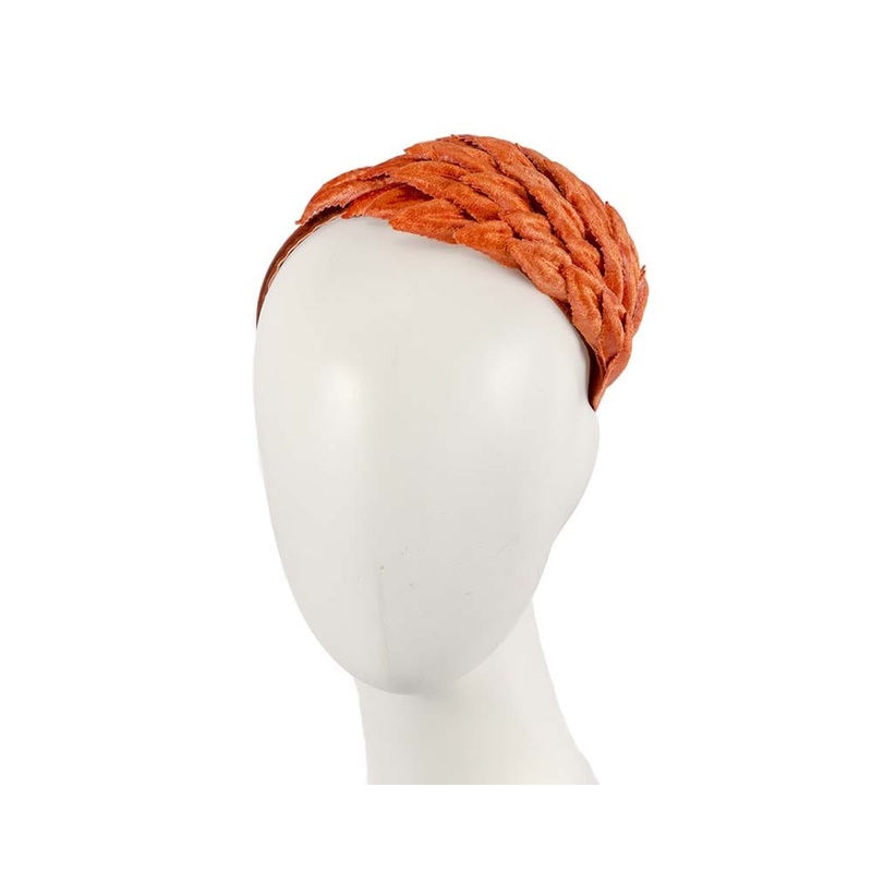 Orange feather-like leaves arranged in a perfectly balanced petite fascinator headband. Hand-made to perfection to our high quality standards. Designed in Australia Renown Max Alexander brand Headband for easy wear