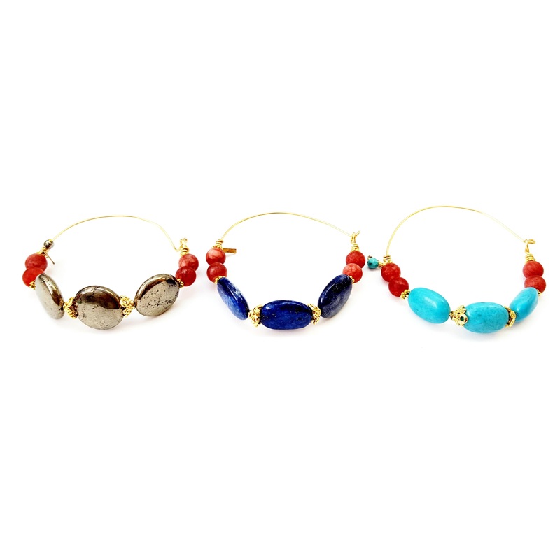Rustic color bracelets. Made of jade, lapis, pyrite and turquoise with gold plated accents makes a perfect bracelet for everyday. Semi-cuff with clasp.