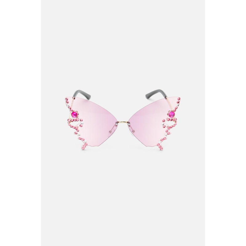 Pink Butterfly Sparkle Sunglasses- A pair of fun and cool sunglasses- Pink coloured lenses- Shades of pink and clear sparkle edge - Butterfly design- Gold toned chain armsProduct Code: PWFY145