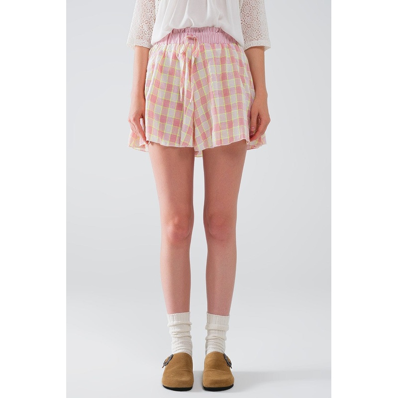 Ideal for casual outings, these Pink Checkered Print Shorts with a high waist and relaxed fit will keep you looking effortlessly stylish and comfortable all summer long.