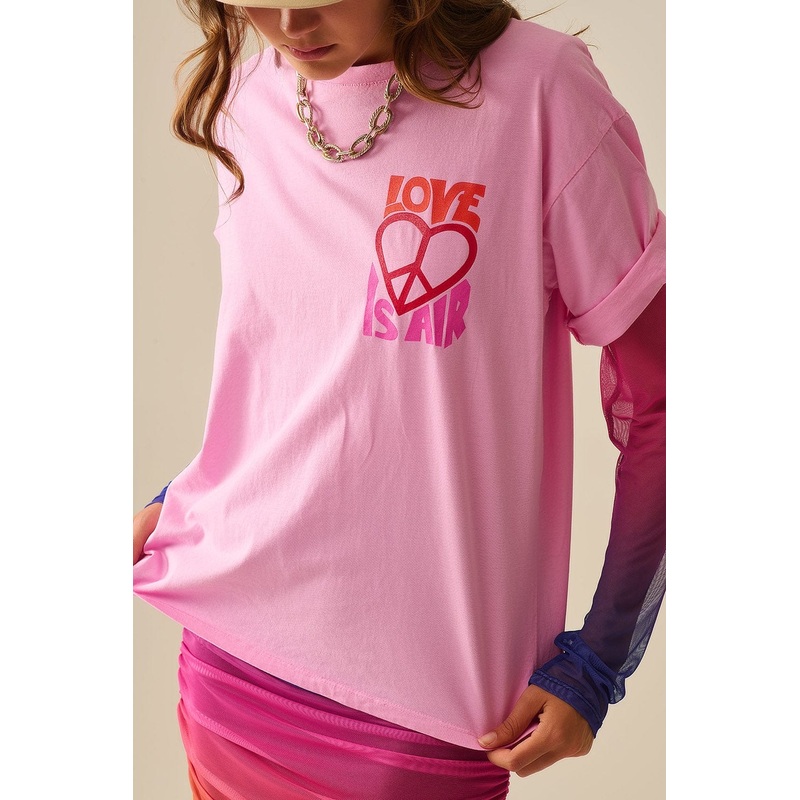 Pink T-Shirt With Love Is Air And Heart With Peace Logo