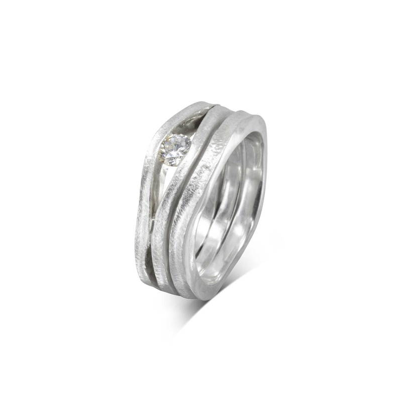 The Platinum Diamond Trap Solitaire Engagement Ring is inspired by pebbles trapped in wood along the Sussex coastline. The cool tones of the chalk cliffs are subtly combined for an organic look.0.33ct Round Brilliant Cut Diamond: The engagement ring featur