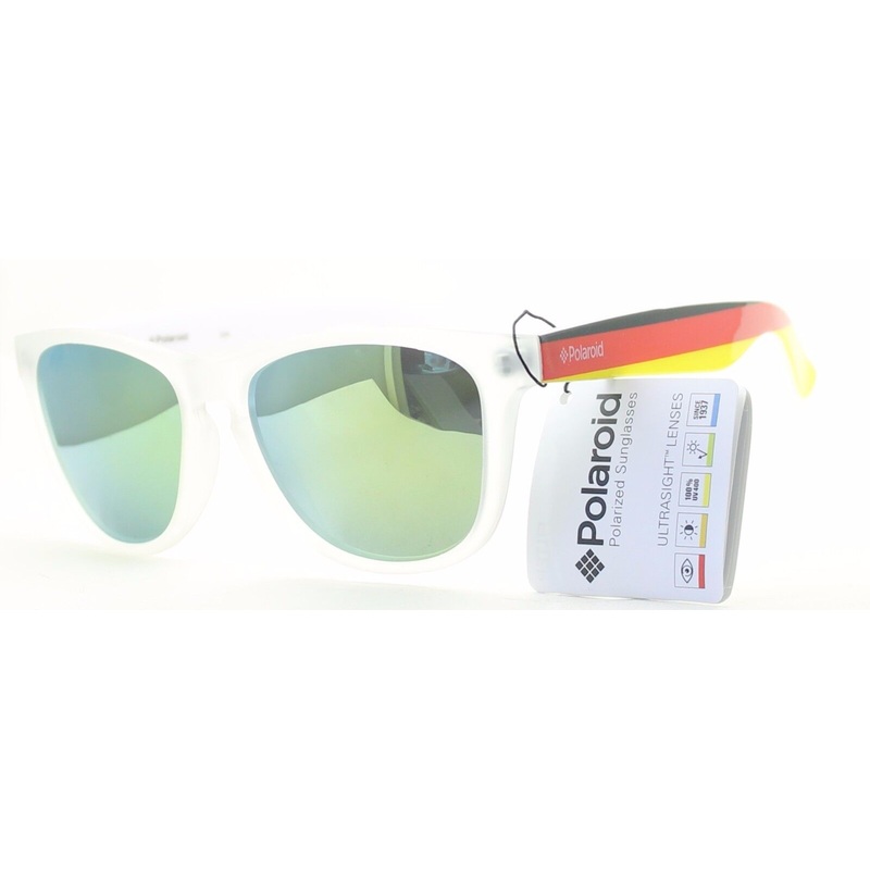 POLAROID Full Rim Sunglasses -100% Authentic - S8443E CWY Filter Cat 3Matte transparent crystal acetate framesGloss German flag over white acetate arms inlaid with Polaroid logosGold mirror tinted polarized lensesBrand new - Never been wornLens Width = 55m