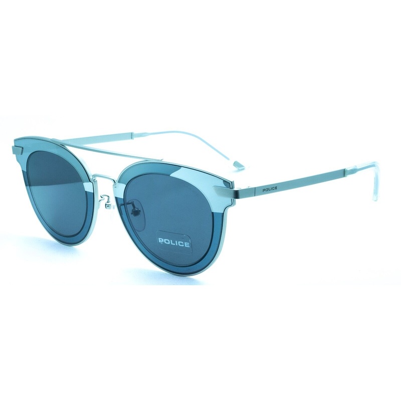 POLICE Full Rim Sunglasses - 100% AuthenticHALO 2 *3 SPL 349 COL. 0581Satin silver metal frames and arms with Police logosGloss transparent acetate arm endsAdjustable nose pads for a comfort fitGrey mirror tinted lenses with transparent grey acetate surrou