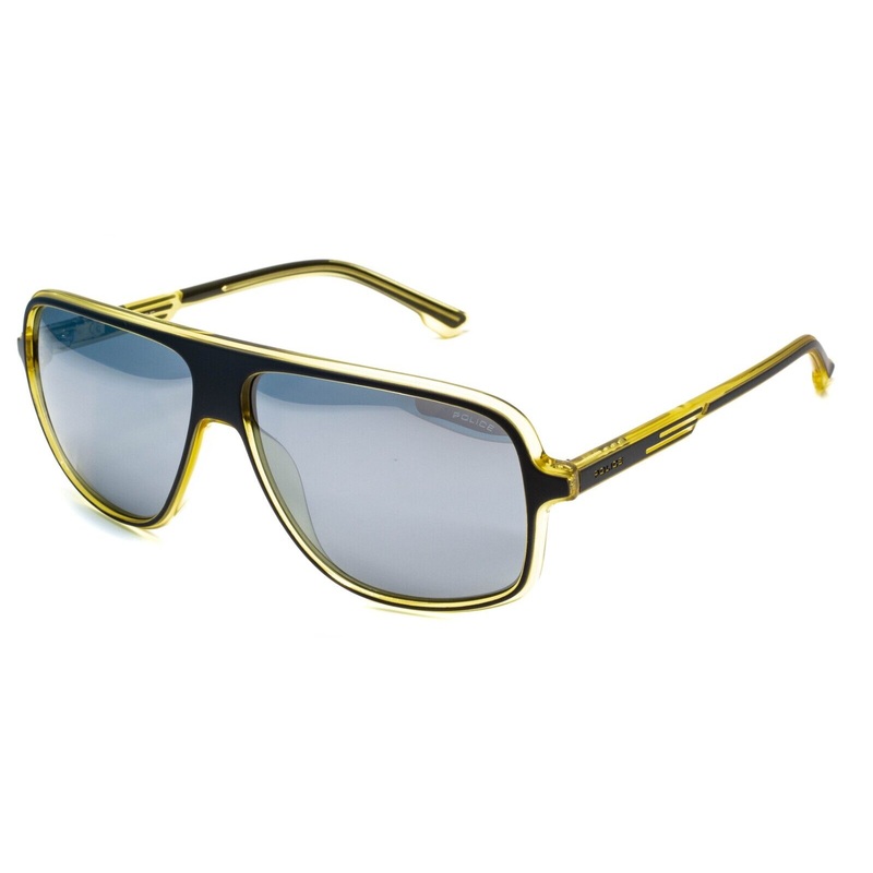 POLICE Full Rim Sunglasses - 100% AuthenticOFFSET 2 SPL961 KAUP *3pGloss transparent yellow acetate frames and arms with matte grey acetate insertsGrey mirror polarized tinted lensesBrand new - Never been wornLens Width = 60mmFrame Height = 51.5mmBridge =