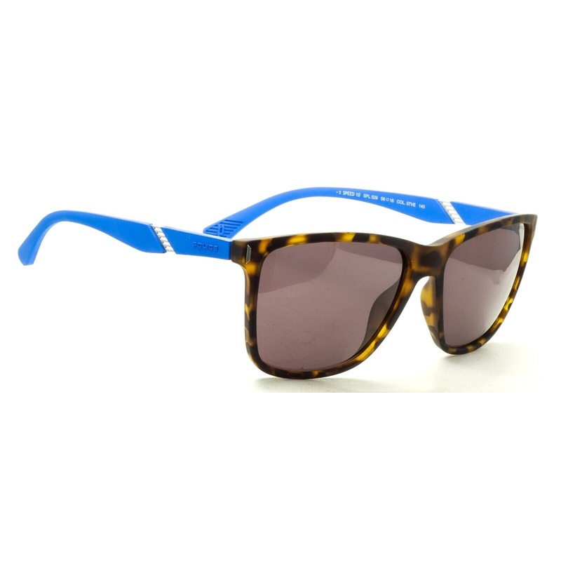 POLICE Full Rim Frames - 100% AuthenticVPL 390 COL. 06C9 SPEED 7Matte tortoise black rubber coated metal framesMatte blue arms with raised Police logosSatin silver metal bridge and cutout sidesBrand new - Never been wornLens Width = 58mmFrame Height = 50mm