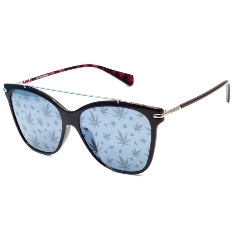 POLICE Full Rim Sunglasses - 100% AuthenticSPL404V COL. 6XKL *3Gloss brown acetate framesPolished ruthenium metal top bridge and hinges with Police logosGloss brown over leaf patterned acetate armsBlue mirror tinted lenses with leaf patternBrand new - Neve