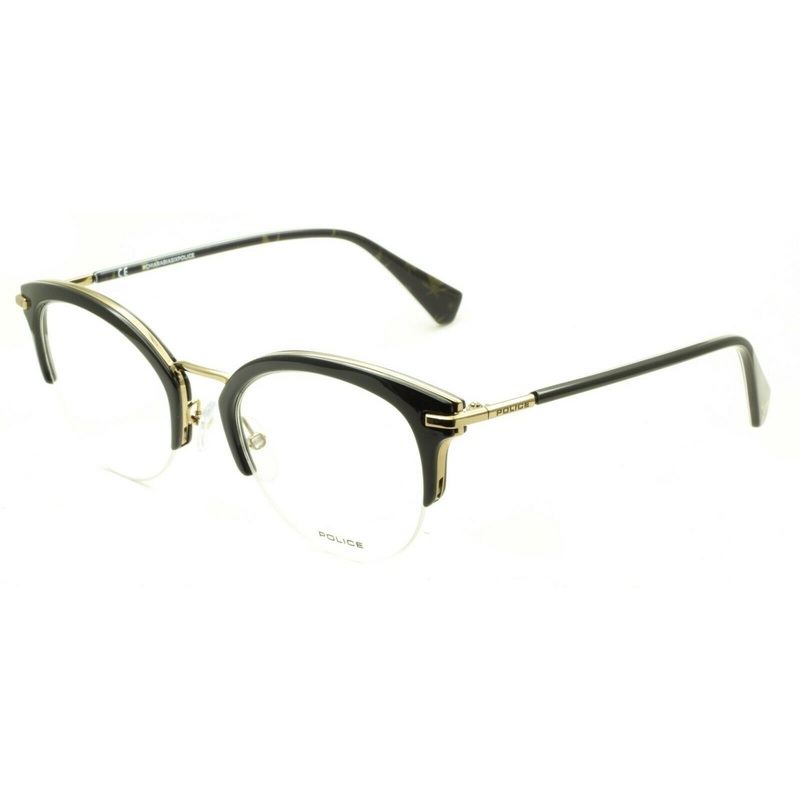 POLICE Half Rim Frames - 100% Authentic - VPL 418V COL. Z42V#chiarabiasixpoliceGloss black acetate frames with polished rose gold metal top insert, bridge and hingesGloss black over patterned brown acetate armsAdjustable nose pads for a comfort fitNever be