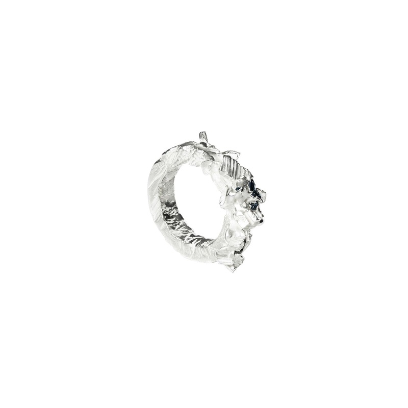 TheAnomaly Polycrystal Small Ringby Zydrune made in Sterling Silver and Silicon Carbide.Handmade in the heart of London, keeping innovative and ethical jewellery making at the forefront of the production.Inspired by a snowflake composed of great numbers of