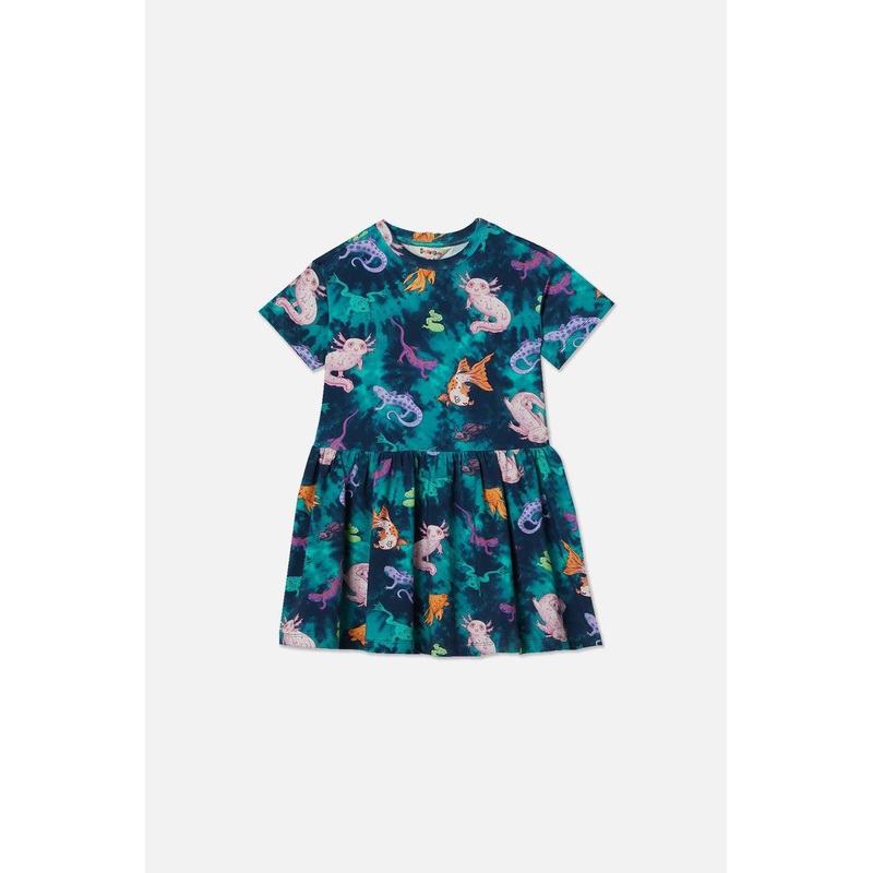 printed cotton relaxed fit dress - cotton natural stretch fabrication- short sleeve length- finishes at knee length - soft gathers at dropped waist seam- short sleeve length - rounded neckline- features exclusive print Product Code: DKGW100