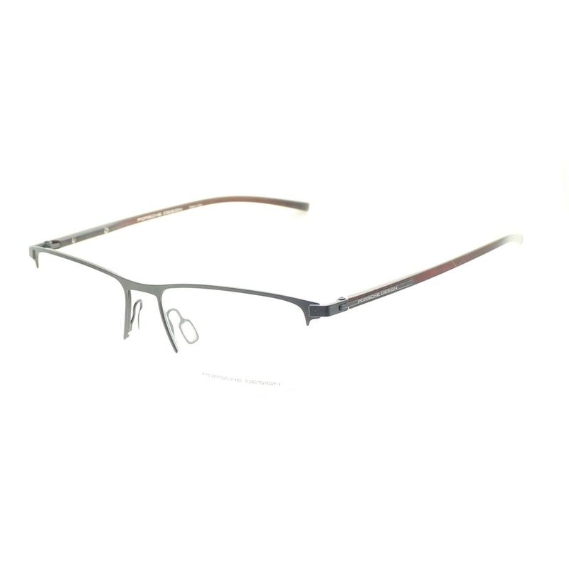 PORSCHE DESIGN Half Rim Frames - 100% Authentic - P'8371 AMatte black metal frames and hinges, one with Porsche logoMatte transparent dark red acetate armsAdjustable nose pads for a comfort fitBrand new - Never been wornLens Width = 56mmFrame Height = 39mm