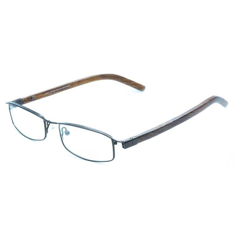 PORTA ROMANA COLLECTION Full Rim Frames100% Authentic - 1813 col. 300Polished dark gunmetal frames and hingesMatte brown wood armsPrecision spring hinges and adjustable nose pads for a comfort fitBrand new - Never been wornLens Width = 52mmFrame Height = 2