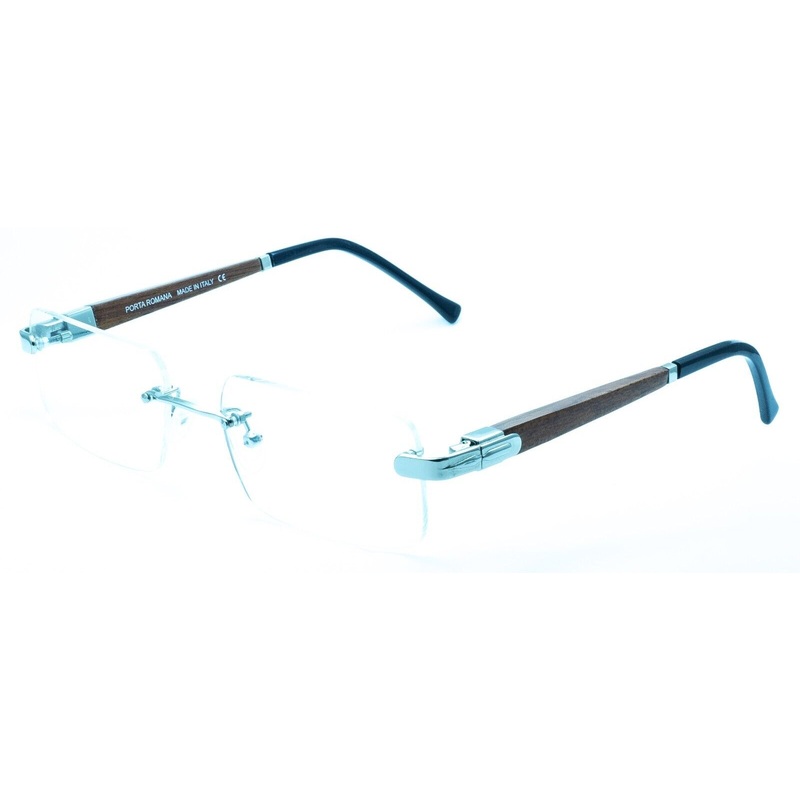 PORTA ROMANA COLLECTION Rimless Frames100% Authentic - 1917 col. 600Polished ruthenium metal frames and hingesMatte brown wood armsGloss black acetate arm endsPrecision spring hinges and adjustable nose pads for a comfort fitBrand new - Never been wornLens
