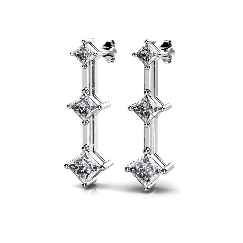 Princess Triple Lab-Grown Diamond Earrings with 0.52 ct.(finished) 1.8mm, 2.4mm, 2.9mm