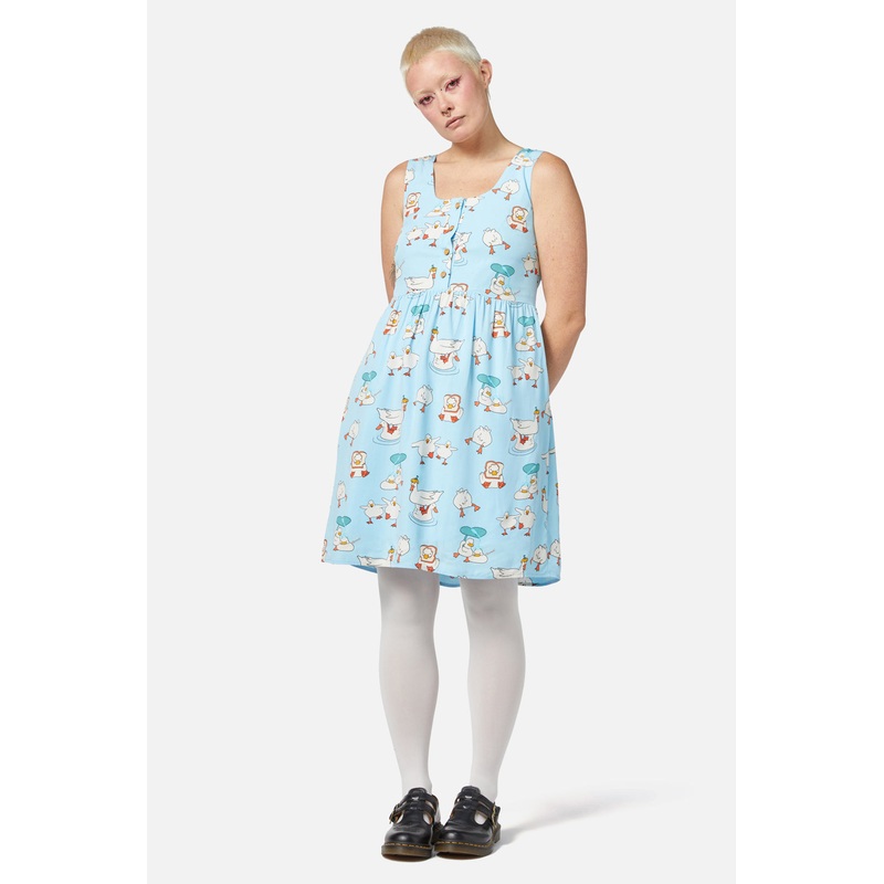 Printed Dress- Round neckline- Bodice centerfront button placket- Gathered waist skirt- Available in Blue & BlackProduct Code: DGFX320