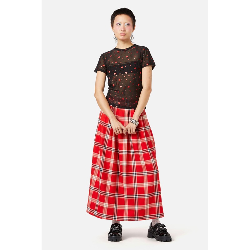 Glittery Mesh Top -Features ‘Queen Of Cats’ Heart Glitter Mesh -Stretch Fit -Tshirt Style Cut -Round Neckline -Made From Polyester -Available In Black/Red