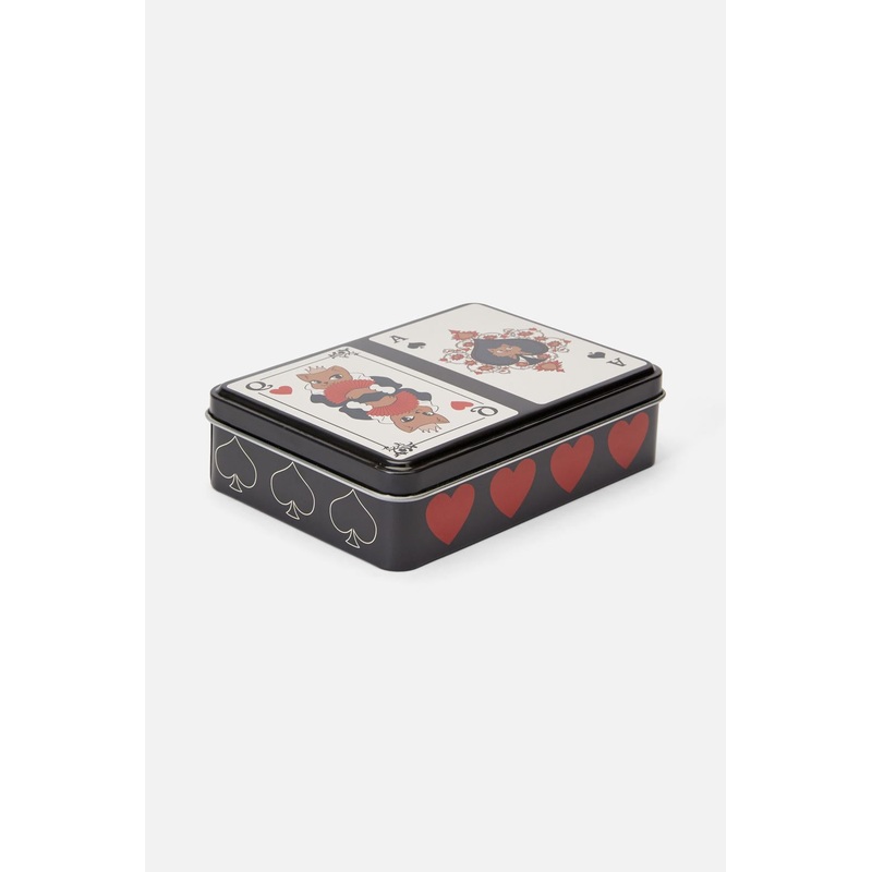 Queen Of Cats Tin- A exclusive- Black with multi coloured cat themed playing cards design- Use for stationary or just about anything- Approximately 14.5cm, 10cm, 4cm in sizeProduct Code: DWFY353