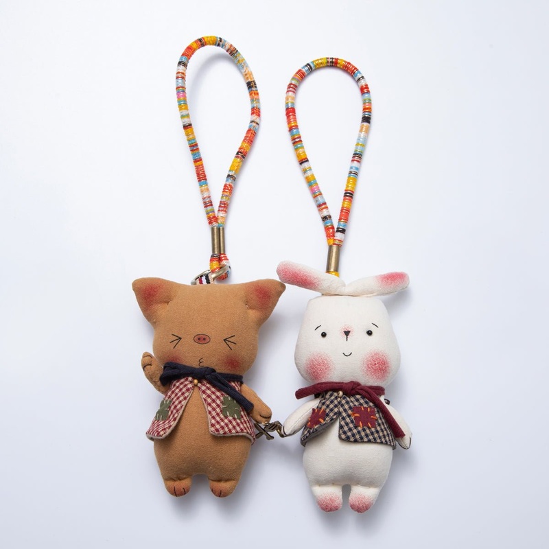 Rabbit, Pig Animal Gingham Scarf Plush Bag Charm Keychain Cord Accessories | WB-00056 WB-00057 Rabbit