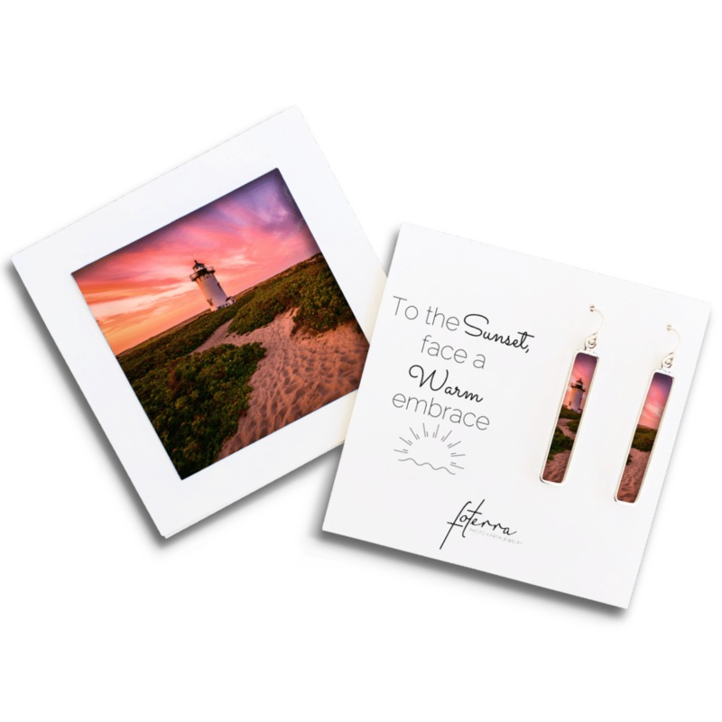 The lighthouse on the Race Point Sunset earrings captures the feeling of safety and security, with a beautifully-renderedphotograph in sterling silver. Whether you wear them as a reminder of a special place, or simply as a symbol of guidance and protection, these earrings sure to become a cherished part of your jewelry collection.