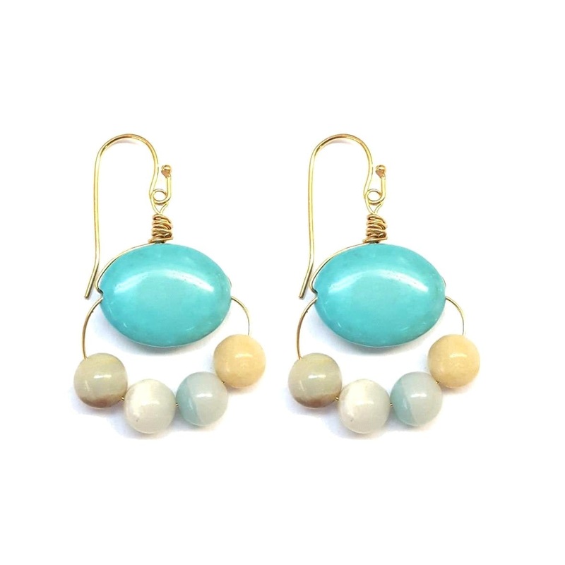 Pretty amazonite with turquoise with gold-plated accents. French wire. Pierced. Hangs 1.5 inches.