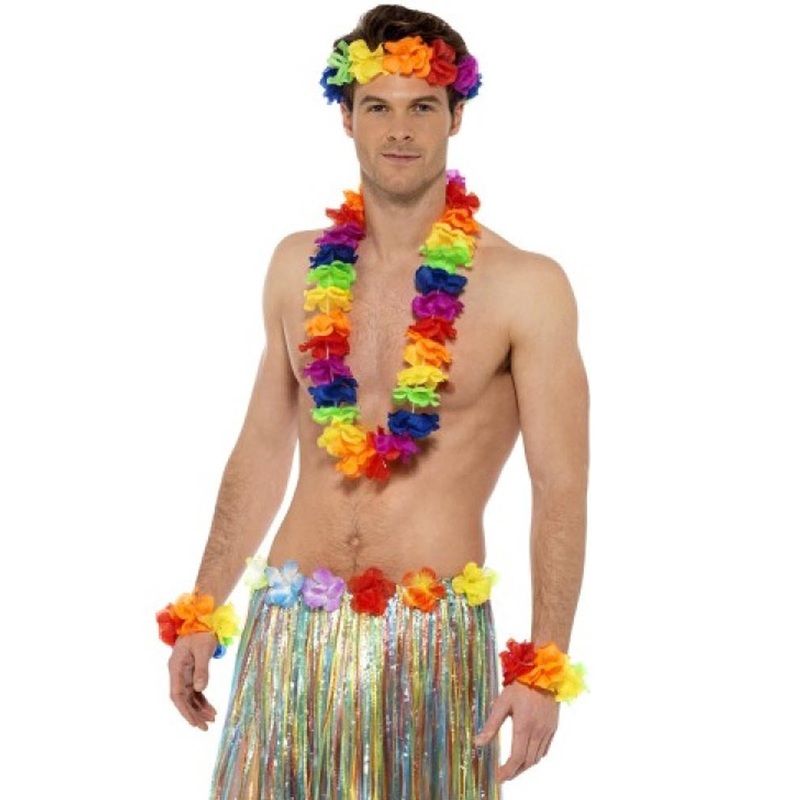 Item Includes:Lei.Headband.2 x Wristbands.Fit and Sizing:One size fits most.Please note: Top and skirt not included.Aloha.You'll look like you stepped straight off Waikiki Beach with this Rainbow Hawaiian Headband Lei and Wristbands Set. The set includes a