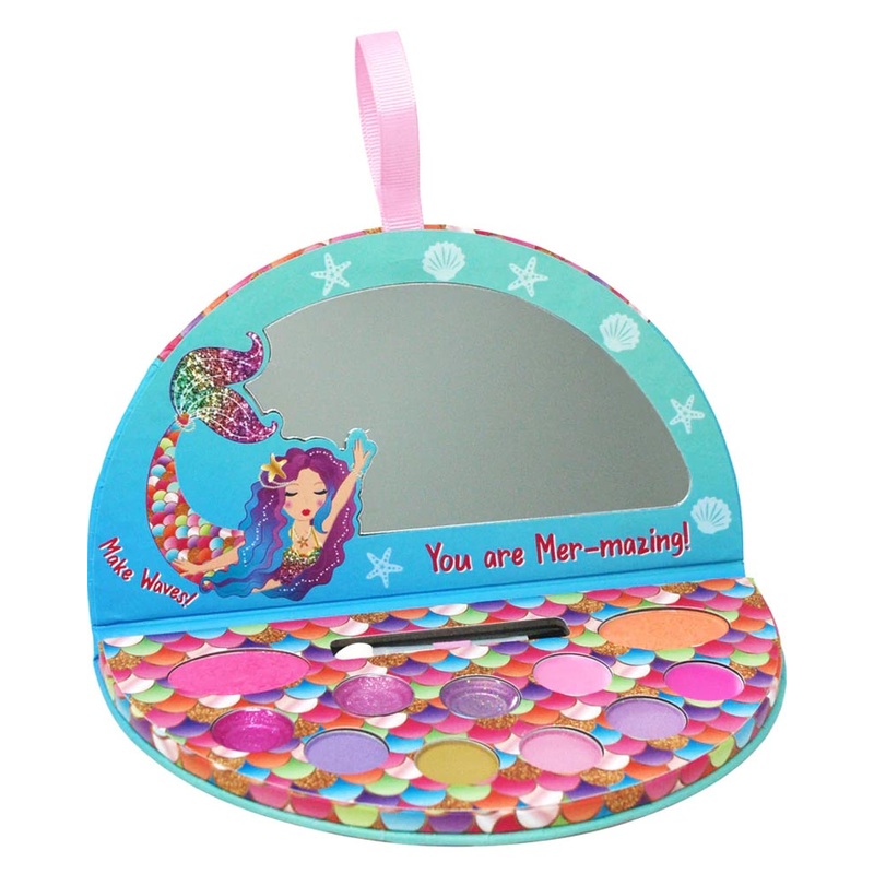 Item Includes:Makeup palette.Mermaid accessoryLet your little one finish off their mermaid costume with this Rainbow Mermaid Cosmetic Palette. This adorable makeup palette is shaped in a semi-circle with printed images of mermaids and colourful scales. Ins