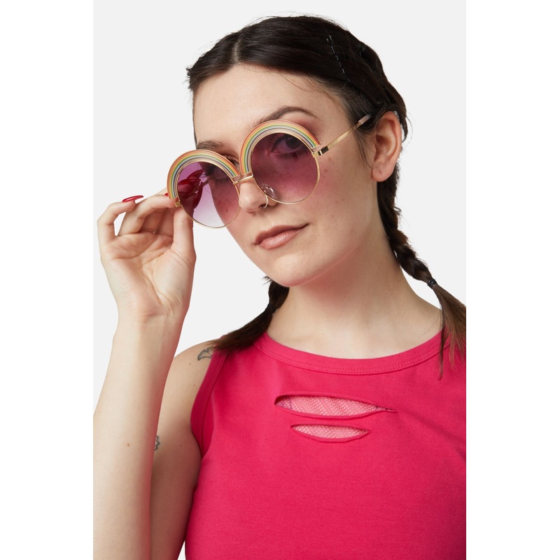 Rainbow Round Glasses- Fun and cute novelty eyewear- Lenses pink in colour- Rainbow design - Large and round in shape- Gold toned hardware- Does not protect against the sun- Fashion use onlyProduct Code: DWFW188