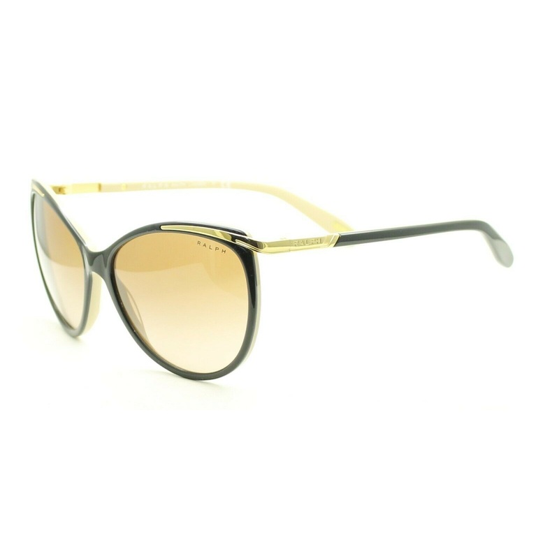 RALPH LAUREN Full Rim Sunglasses -100% Authentic - RA 5150 1090/13 2N Gloss black over beige acetate frames and armsPolished gold metal front inserts and hinges engraved with Ralph logosBrown gradient tinted lensesBrand newLens Width = 59mmFrame Height = 5