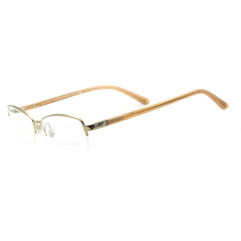 RALPH LAUREN Half Rim Frames - 100% Authentic - RL 5055 9101 Polished gold metal frames Gloss transparent light brown acetate arms Precision spring hinges and adjustable nose pads for a comfort fit Brand new - Never been worn Lens Width = 53mm Frame Height