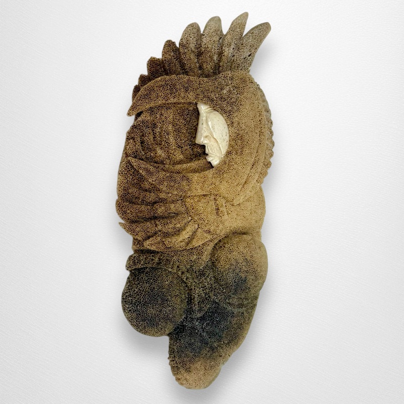 Fossil Whale Bone with Walrus Jawbone wall hanging maskSigned by ArtistSize - 9 3/4" x 4 1/4" LxW