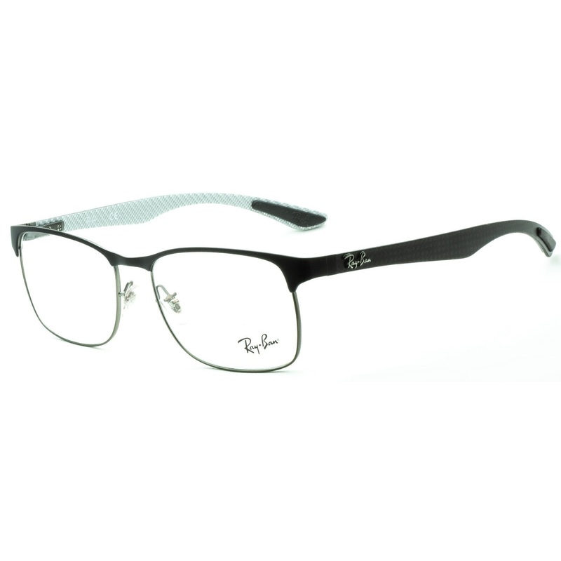 RAY BAN Full Rim Frames - 100% Authentic RB 8416 2916 Satin black metal frames Matte black over silver carbon fiber acetate arms with black rubber end pads Adjustable nose pads for a comfort fit Brand new - Never been worn Lens Width = 55mm Frame Height =