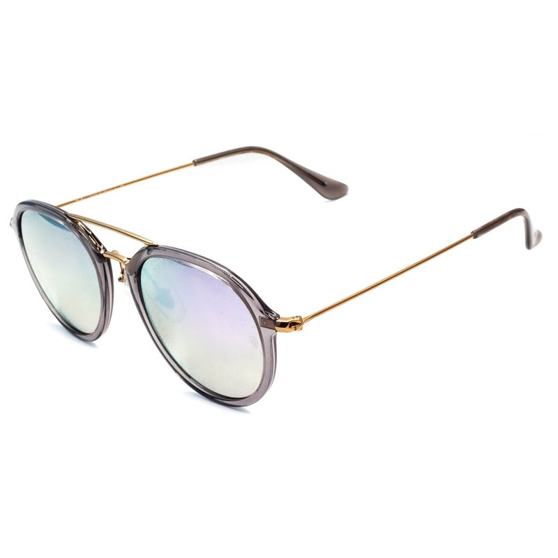 RAYBAN Full Rim Sunglasses -100% AuthenticRB 4253 6237/7XGloss transparent grey acetate frames and arm end coversPolished gold metal armsAdjustable nose pads for a comfort fitLilac mirrored tinted lensesBrand newLens Width = 50mmFrame Height = 48mmBridge =